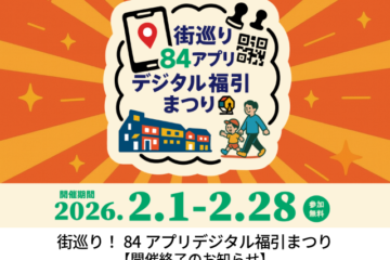 2026年2月に開催いたしました橋本商店街協同組合の大人気企画 街巡り!84アプリ デジタル福引まつり すべてのプログラムを終了いたしました。 ご参加いただいた皆さま、 またアンケートにご協力いただいた皆さま、 誠にあり…