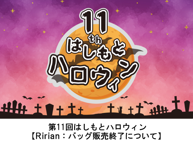 第11回 はしもとハロウィン【Ririan:バッグ販売終了について】 2025年9月27日 管理者 イベント情報, ハロウィン 専用ハロウィンバッグのご購入者が多く、 上記販売店のバッグが売り切れ、販売終了となりました。 ハロウィンスタンプラリーへの参加をご検討されてる方は、 販売店一覧をご確認の上、お早めにお買い求め下さい。 =販売店有無情報をチェック= ※ご購入の際はお買い物前に必ず専用バッグが残っているかを店舗にご確認下さい。