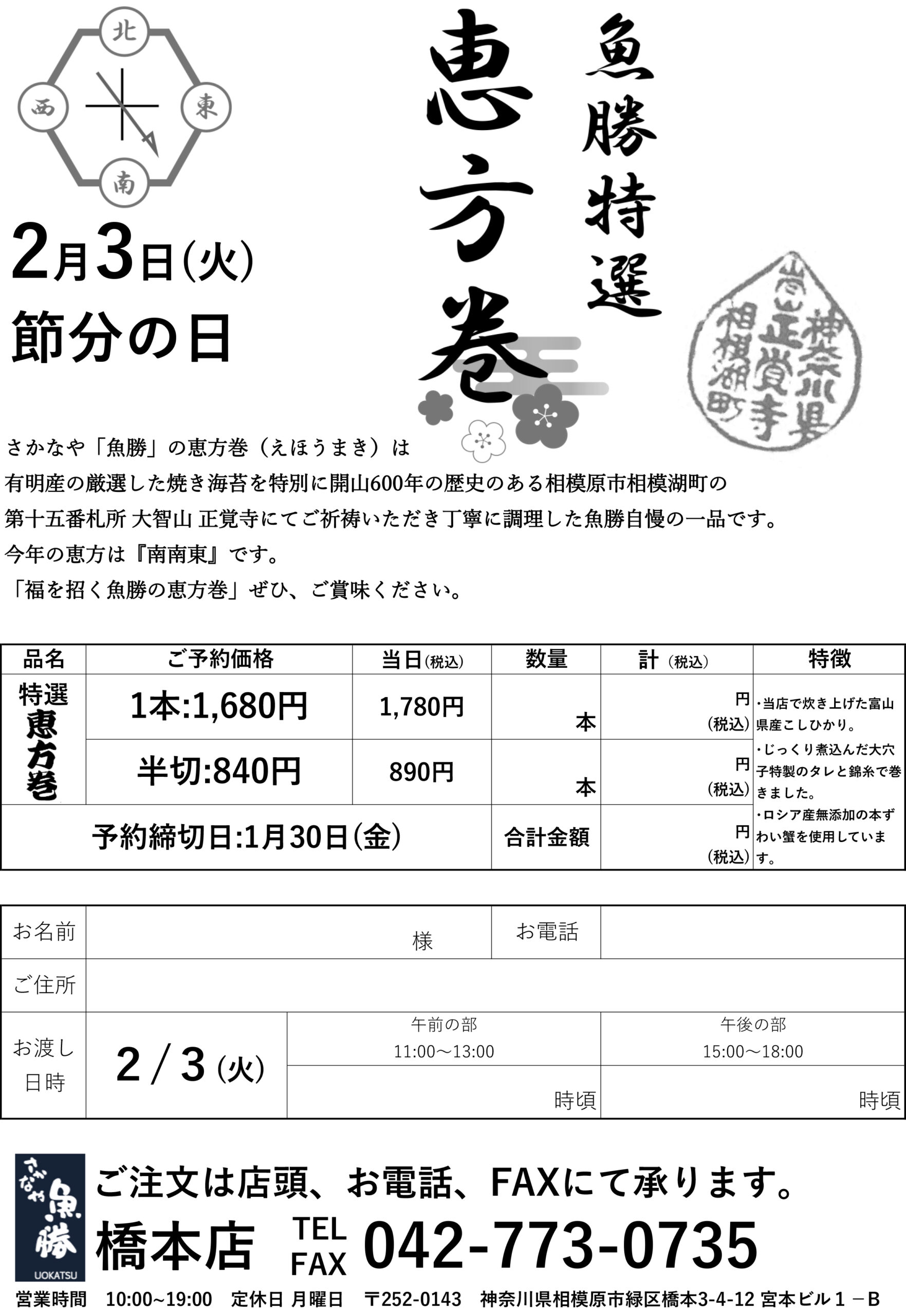 さかなや魚勝:特撰恵方巻販売のお知らせ