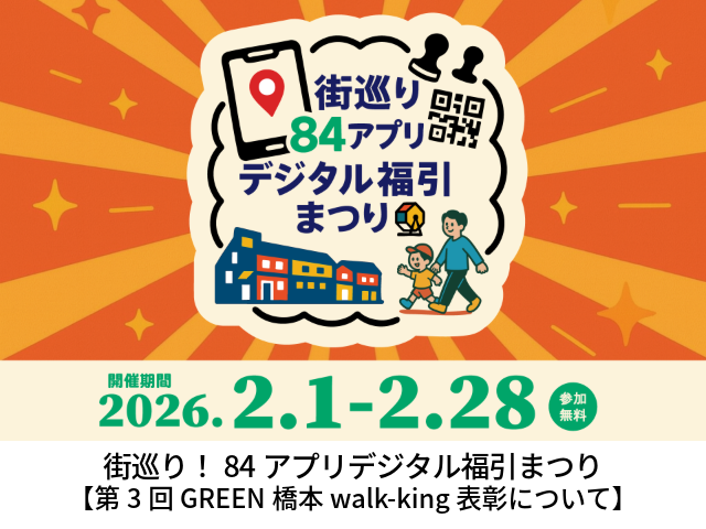 街巡り!84アプリ デジタル福引まつり【第3回 GREEN橋本 walk-king 表彰について】
